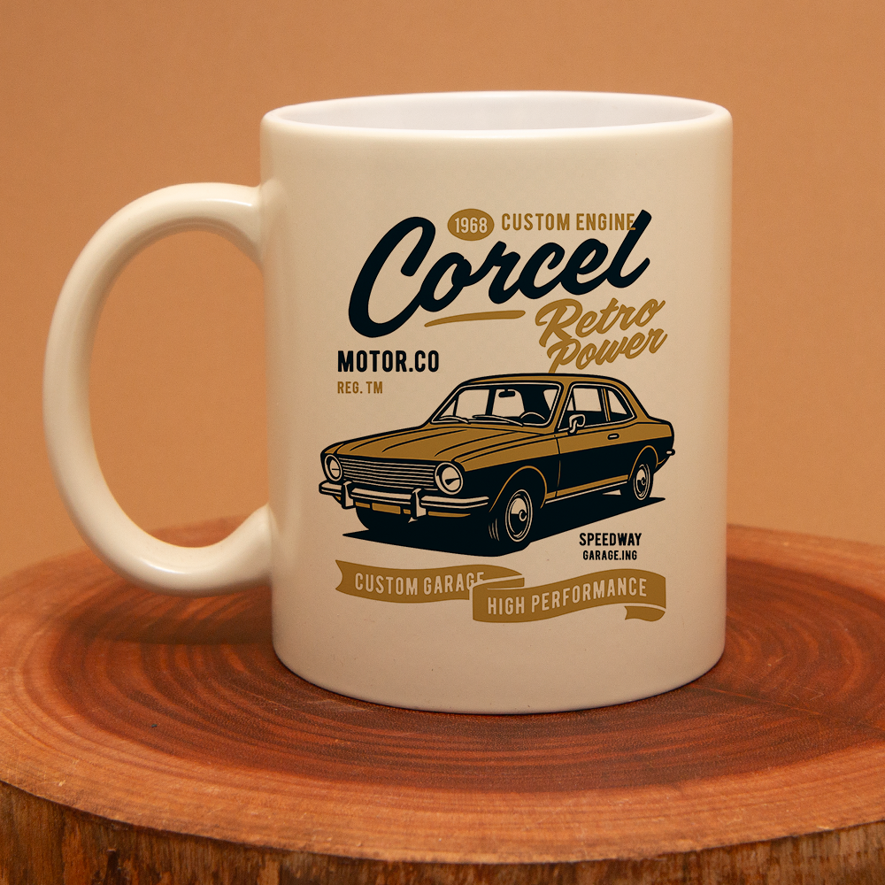 A Caneca Ford Corcel I é uma homenagem a um dos maiores clássicos da indústria automotiva brasileira. Produzida em cerâmica resistente, ela possui acabamento brilhante e uma estampa inspirada no design original do Corcel I, símbolo de elegância e robustez nas ruas dos anos 70 e 80.