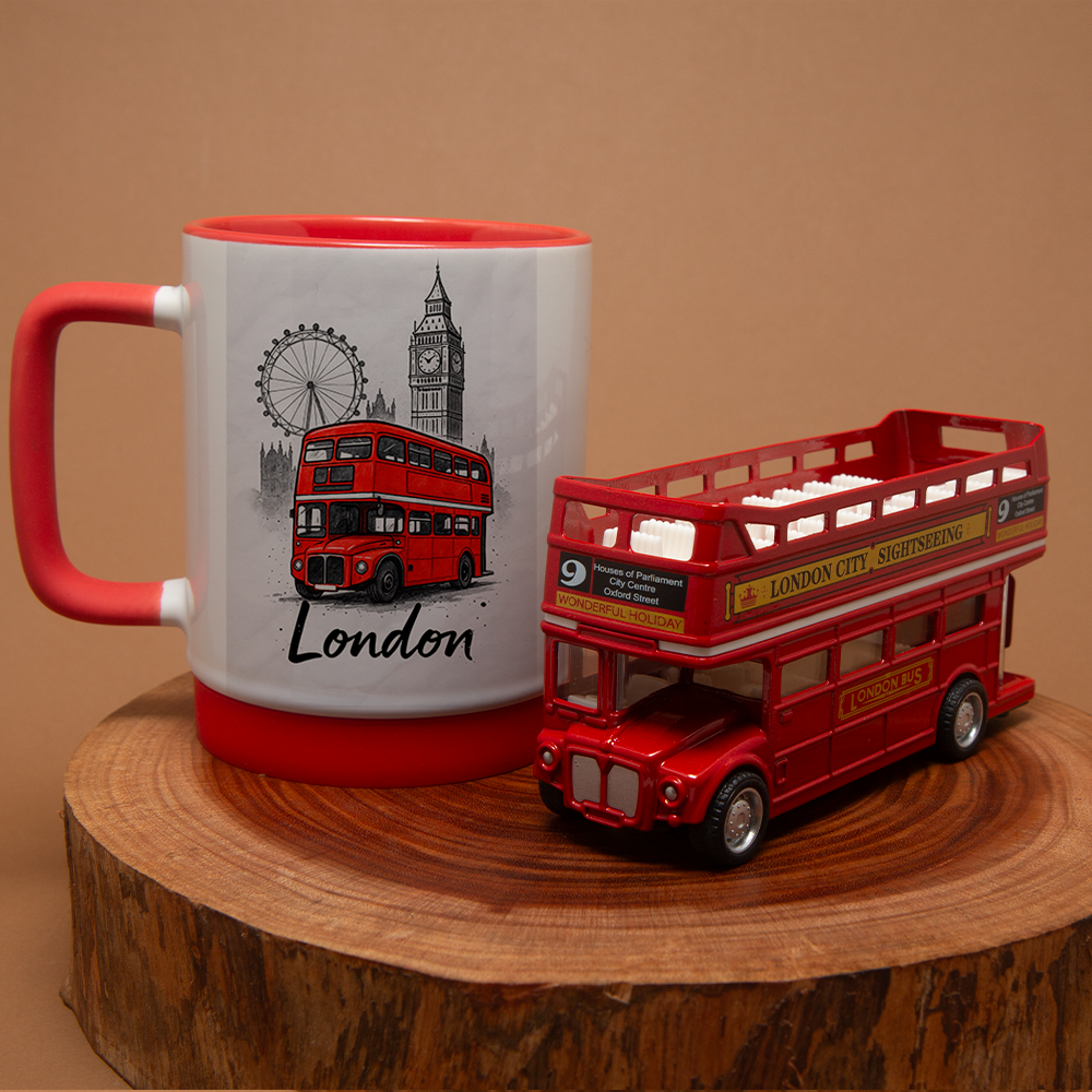 Encante-se com o charme britânico neste kit temático de Londres, pensado para quem ama viajar, colecionar lembranças ou presentear com estilo. A caneca de 300ml traz uma arte inspirada na cidade, com o ônibus londrino em destaque e elementos icônicos ao fundo como o Big Ben, a Tower Bridge e a London Eye, criando uma composição elegante e cheia de personalidade.